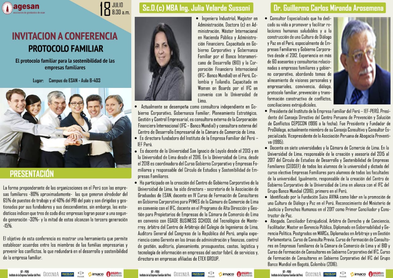 Conferencia : El Protocolo Familiar para la Sostenibilidad de las Empresas Familiares – AGESAN – Universidad ESAN