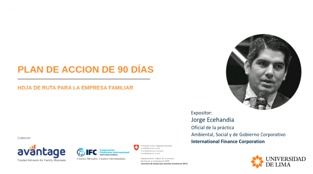 Conferencia «Protocolo para el éxito de las empresas familiares» dictada el 05 de marzo del 2020, organizada por el Instituto de Empresa Familiar del Perú , IEF -Perú, con la cooperación de la Corporación Financiera Internacional , (IFC – Banco Mundial) y la Cooperación Suiza (SECO)